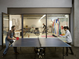 Initialement destiné à accueillir la cuisine commune de deux bureaux de paysagistes, cet espace est rapidement devenu l’occasion d’explorer la multiplicité des usages qu’un lieu partagé peut accueillir au quotidien. Pensé comme un espace ouvert et évolutif, il se transforme au fil des besoins : cuisiner, se réunir, travailler, bricoler, faire du sport ou simplement faire une pause.