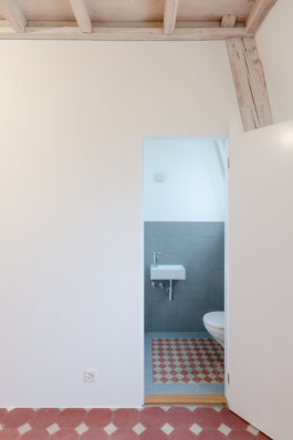 Comme souvent en architecture, les meilleures solutions sont celles qui paraissent les plus simples. Pourtant, ajouter des appareils sanitaires dans une construction existante est un exercice délicat. Ici, après l’élaboration de plusieurs scénarios et autant de sondages non fructueux, c’est la découverte d’une épaisse couche de marin (débris secs anciennement utilisés en isolation des planchers) qui va permettre de connecter ces nouvelles installations au réseau.