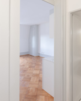 Chaque fonction y est alors répartie: les WC à l’emplacement existant et accessibles depuis l’entrée pour les visiteurs; la douche et le lavabo, qui créent un passage entre les deux chambres; puis un nouveau WC qui est rattaché à l’appartement 2 pièces pour optimiser la salle de bains de ce dernier.